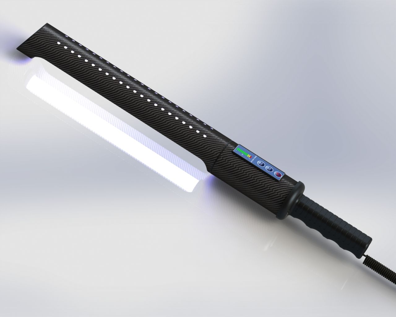 The BioWAND is hand held and the battery unit is straped to the operators back. It is waved over the desired area, killing bacteria and viruses leaving it safely sanitised.